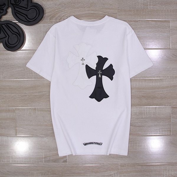 brand poison version tide br ch cro new heart black white cross skin embroidery casual round neck short sleeve t-shi, White;black