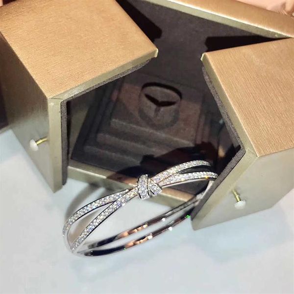 brand pure 925 sterling silver jewelry for women cross tie bangle rose gold knot bangle wedding jewelry engagement bracelet269r, Black