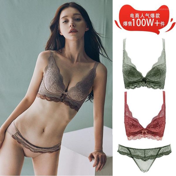 bras european and american-style lace thick gather small chest underwear women's wireless bra1, Red;black