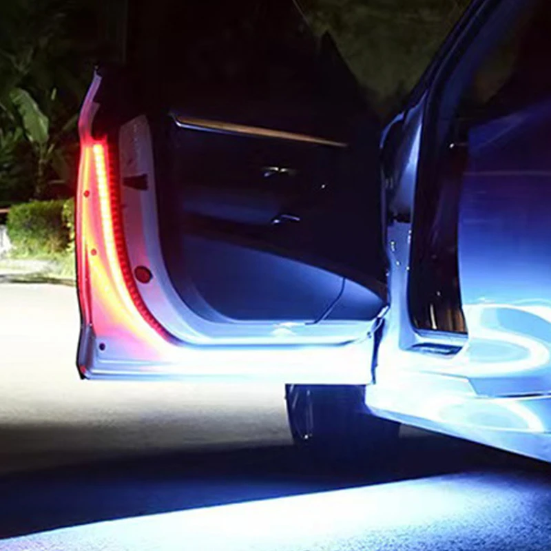 2pcs Car Door Opening Warning Led Lights Welcome Decor Lamp Strips Decorative Ambient Light Flexible Waterproof 1.2m White Red