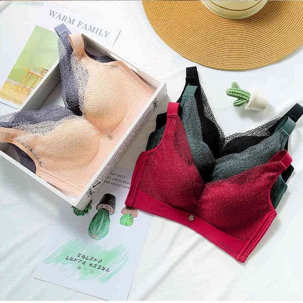 bras sets and comfortable lace underwear without steel ring 36, Red;black