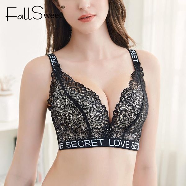 bras sets fallsweet plus size lace bra set no wire underwear women comfort lightly lined and panties, Red;black