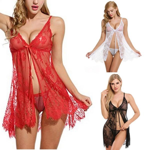 bras sets lingerie set women sleepwear porno front closure babydoll lace g-string, Red;black