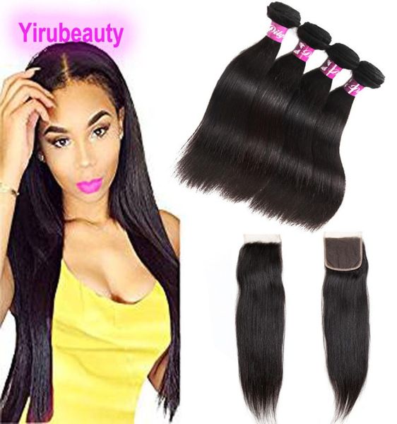brazilian virgin hair 4 bundles with 4x4 lace closure 5 pieceslot straight hair human hair wefts with closure natural color4172211, Black;brown
