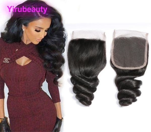 brazilian virgin hair 4x4 lace closure loose wave middle three part 1024inch human hair lace closures with baby hairs1446718, Black;brown