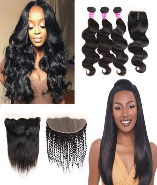 brazilian virgin hair straight human hair weaves with frontal kinky curly remy hair bundles with closure accessories extensions wh9331870, Black