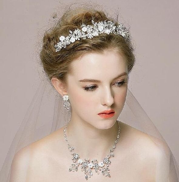bridal crowns jewelry romantic rhinestone tiara necklace earring set bridal wedding accessories party jewelry wedding accessories ht031, Silver