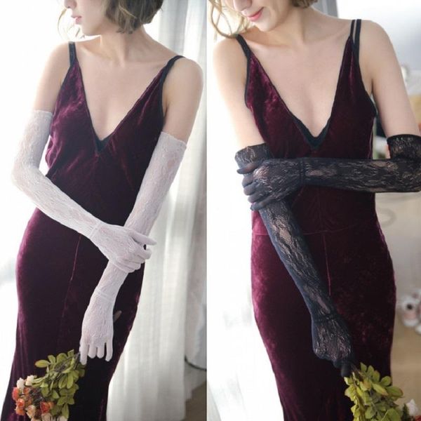 bridal gloves solid spring summer ladies black opera lace white long hollow cosplay finger driving prom st389