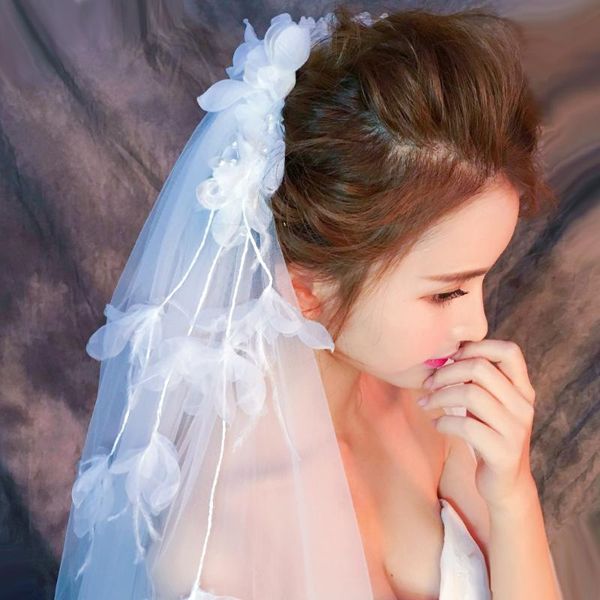 bridal veils women 3d flower tulle ivory veil 2 layer elbow length wedding feather sweet accessory for bride cosplay headpiece, Black