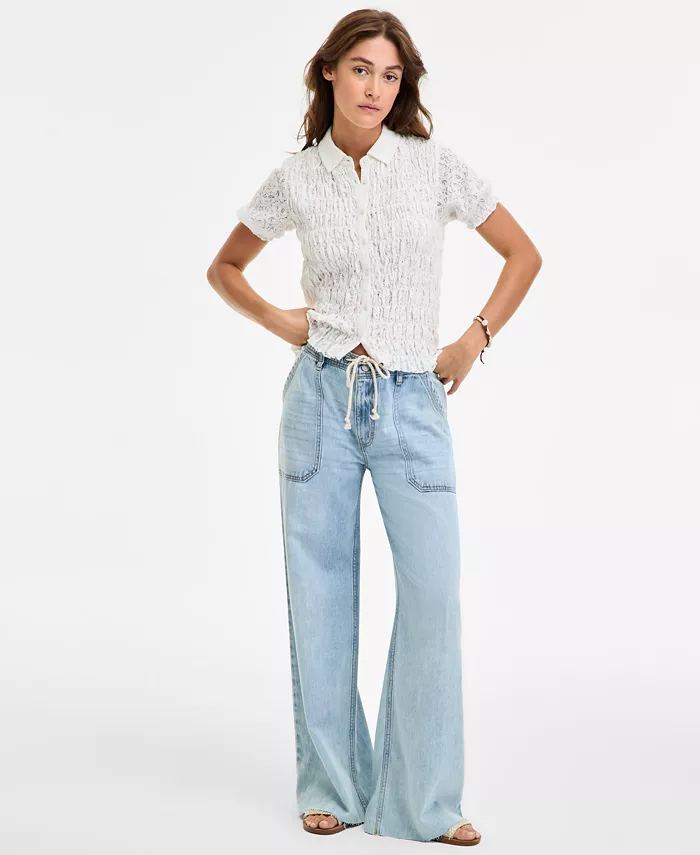 Женские джинсы с широкими штанинами, на поясе со шнурком и накладными карманами Lucky Brand, синий