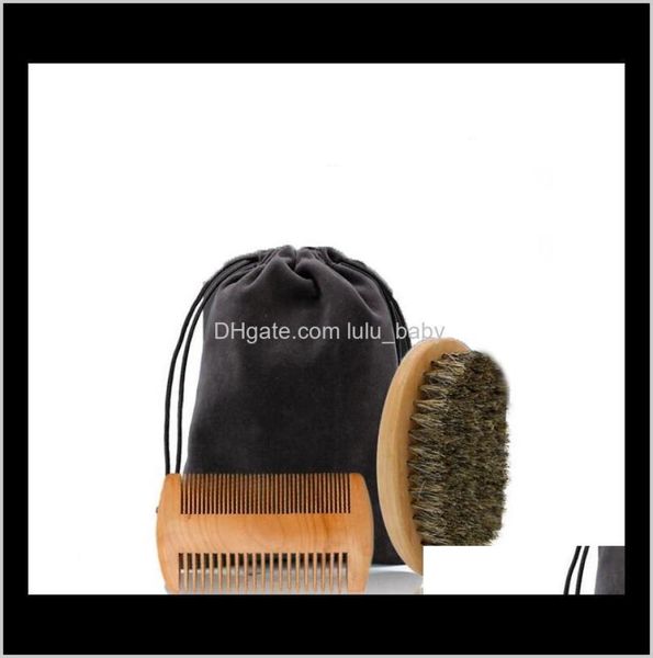 brushes care styling tools hair products drop delivery 2021 boar bristle brush handmade beard comb kit for men mustache with clo2290053, Silver