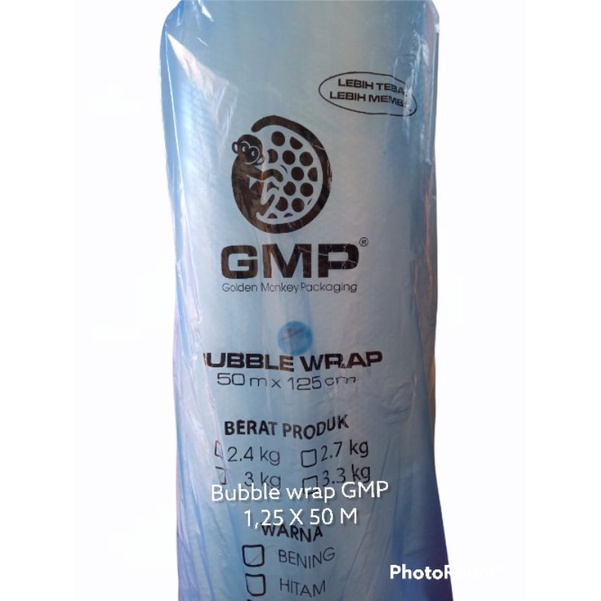 B. Bubble wrap dengan warna bening / hitam ( 1,25 M x 50 M ) 1 roll full , kualitas terjamin merk GMP .