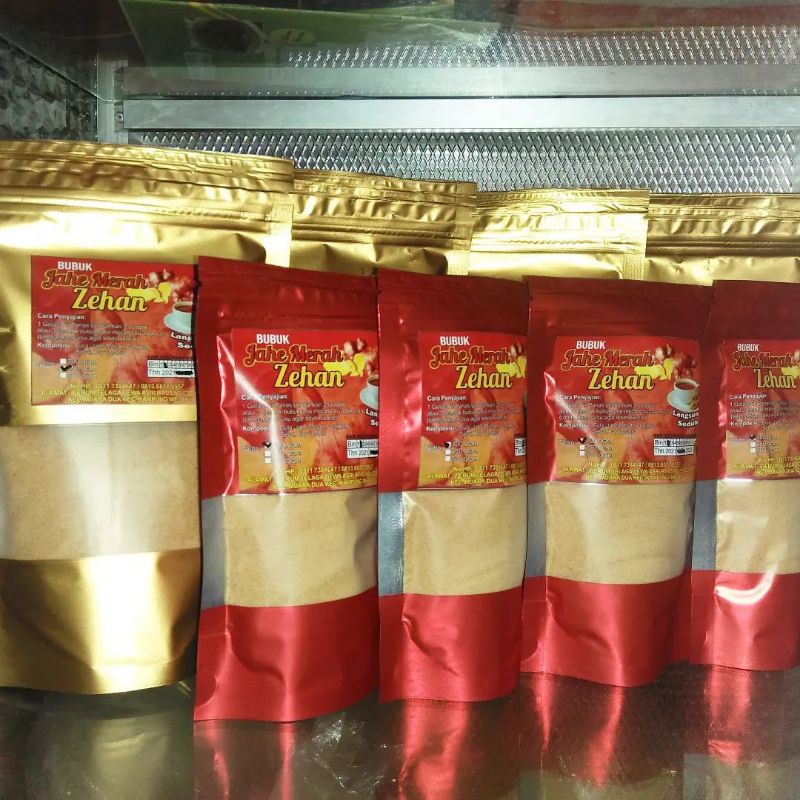 Bubuk Jahe Merah Zehan Langsung seduh tanpa ribet Lebih Nikmat jika di tambah Susu.