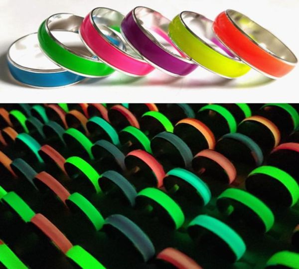 bulk lots 100pcslot amazing luminous rings bright colorful women039s simple band rings 6mm width glow in the dark male female 3689612, Silver