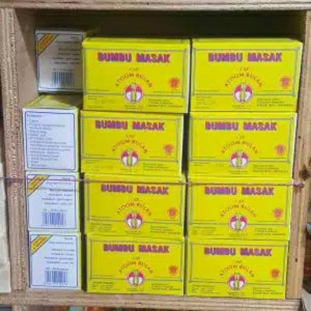 BUMBU PENYEDAP RASA MERK ATOOM BULAN atau Bumbu Masak Cap Atoom Bulan adalah bumbu masak untuk segala macam - macam masakan kuah, masakan gorengan, masakan cah, campuran rasa keripik, kerupuk, cimol, cilok dll. Keunggulan Bumbu masak cap Atom Bulan ini :