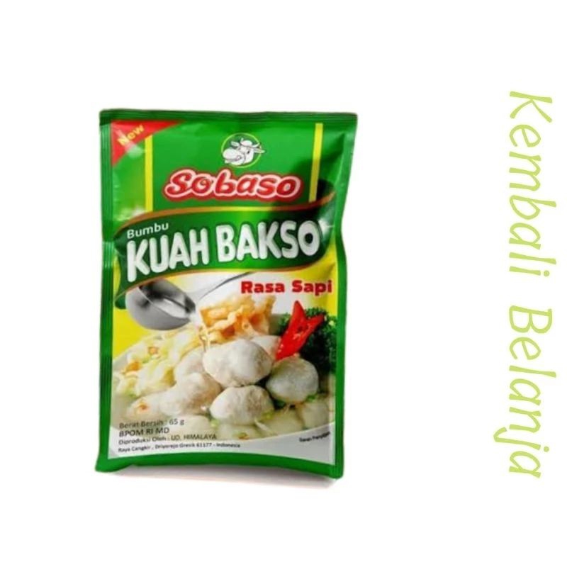 Bumbu Kuah Bakso Rasa Sapi 65 gram Sobaso, cukup diseduh dengan air panas, mampu menghadirkan kuah bakso dengan rasa khas tulang sapi dengan berbagai rempah–rempah seperti pala, cengkeh, bawang merah, bawang putih dan daun seledri.