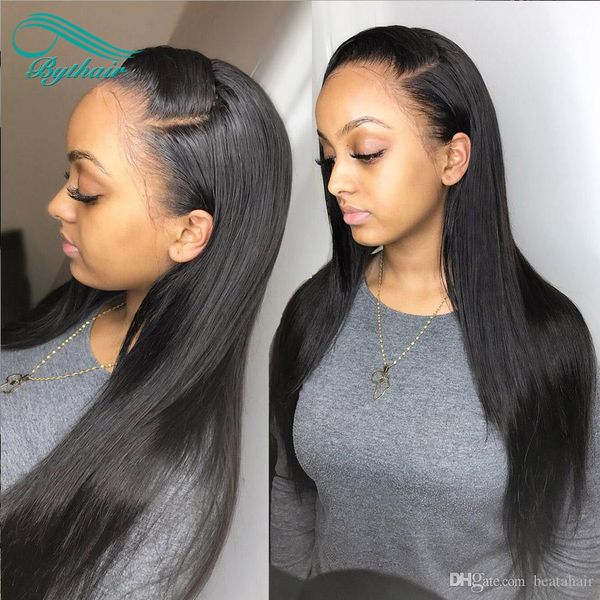 bythair silky straight lace front human hair wig brazilian virgin hair silk full lace wig with baby hairs, Black;brown