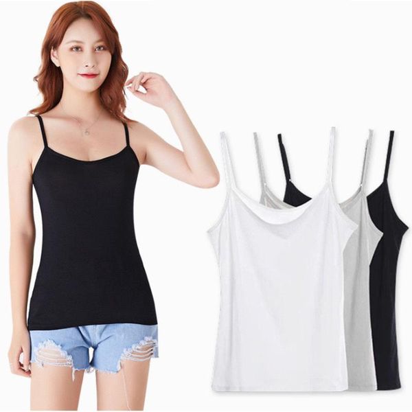 camisoles & tanks 2021 summer slim render women adjustable spaghetti strap tank undershirt u crop 3 colors, Black;white