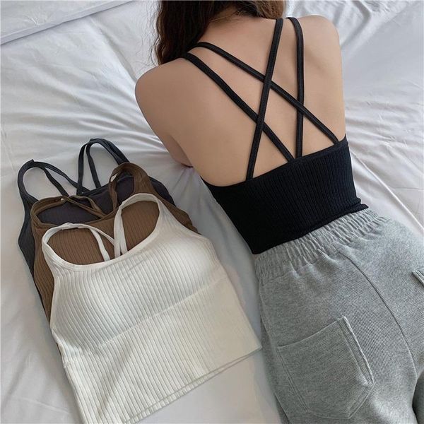 camisoles & tanks spaghetti strap cami slim cropped women summer casual backless skinny streetwear sleeveless camisole, Black;white