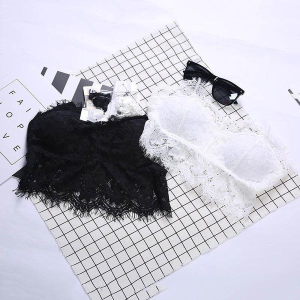 camisoles & tanks women sheer lace floral bralette bralet bra bustier crop cami padded, Black;white