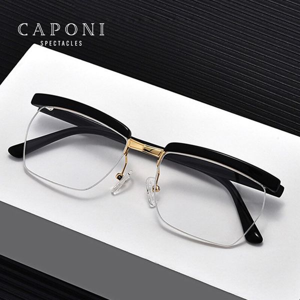 caponi half frame men glasses business clear computer glasses frame brand designer transparent optical men's eyeglasses j1053, Black
