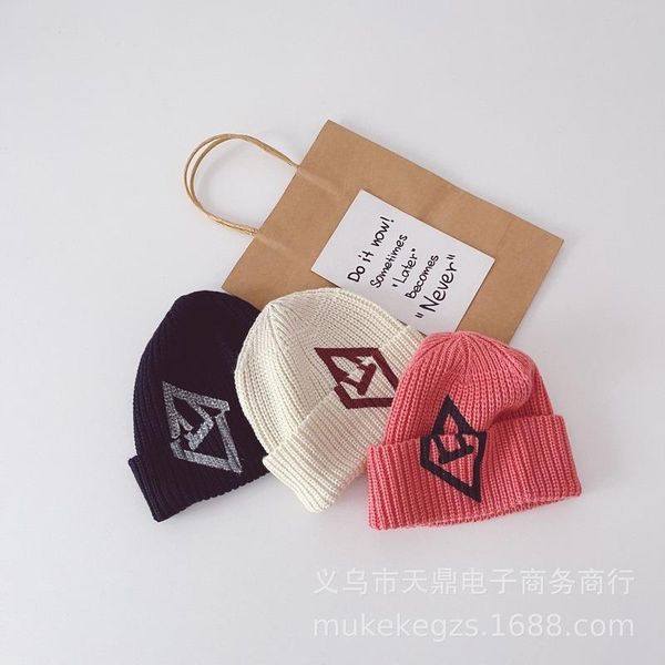 caps & hats children's knitted hat diamond stitching girls and boys baby foreign style wool melon leather hip-hop landlord, Yellow