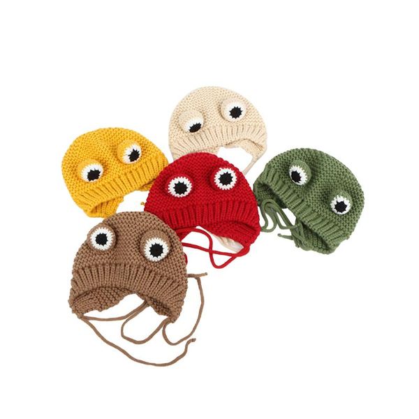caps & hats cute 2021 frog baby hat winter warm plush knitted ear warmer children bonnet boys girls cap beanie christmas, Yellow
