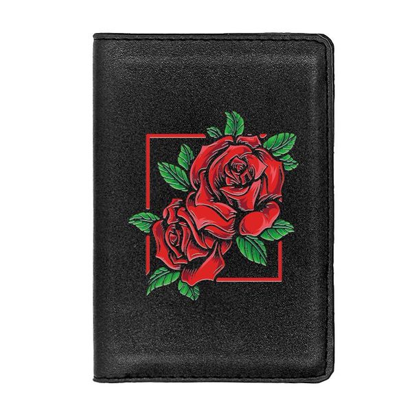 card holders classic fashion art rose printing leather passport case, Brown;gray