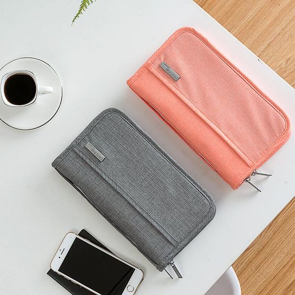 card holders polyester travel document bag, multi-function passport change storage bag, Brown;gray