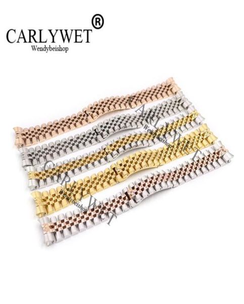 carlywet 20mm 316l stainless steel jubilee silver two tone rose gold wrist watch strap bracelet solid screw links curved end2813830, Black;brown