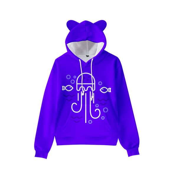 cartoon sea mother printing cute boy girl clothes hooded 3d printing hooded sweater autumn early winter ears hooded pullover, Black