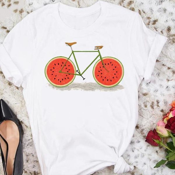cartoon trend watermelon fruit women t shirts short sleeve summer tshirts fashion clothes graphic lady print tee shirt, White