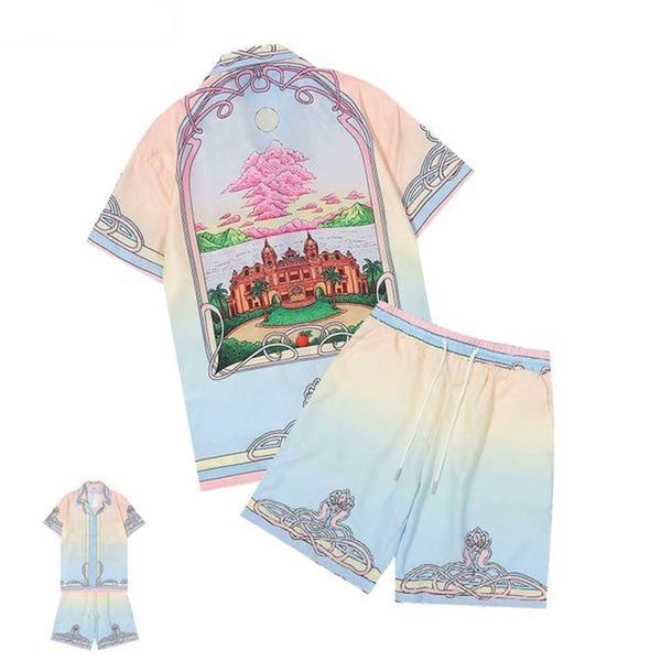 casablanc-s 22ss designer men t shirt set masao san print mens casual and short womens loose silk tees transportation tshirt size m--3xl yvb, White;black