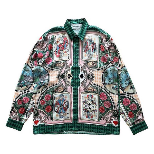 casablanca designer fashion classic men and women shirt ancient poker print shirt medium long westernized slouchy long sleeve sunscreen shir, White;black