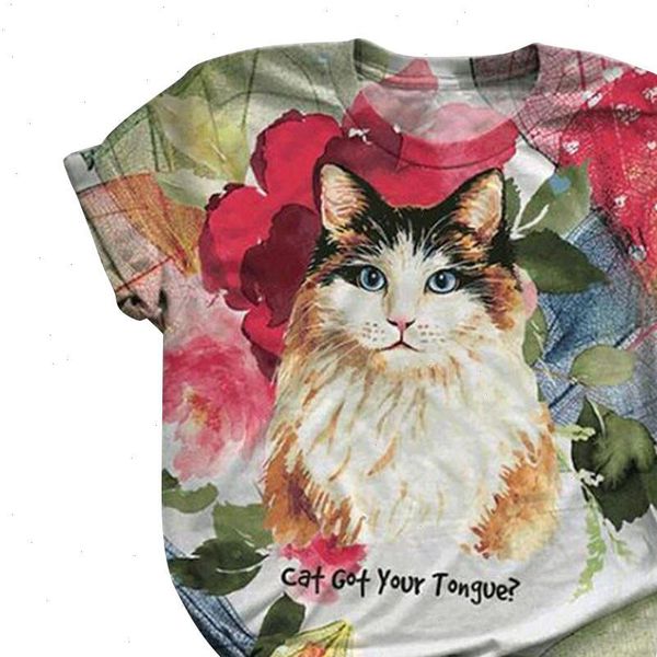 casual cute cat print women t shirts o neck short sleeve for female fashion t shirt ladies summer t hirts mujer, White
