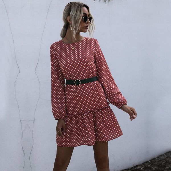 casual dresses 2021 autumn women crew neck printing high waist polka dot long sleeves fashion ladies basic style slim fit mini, Black;gray