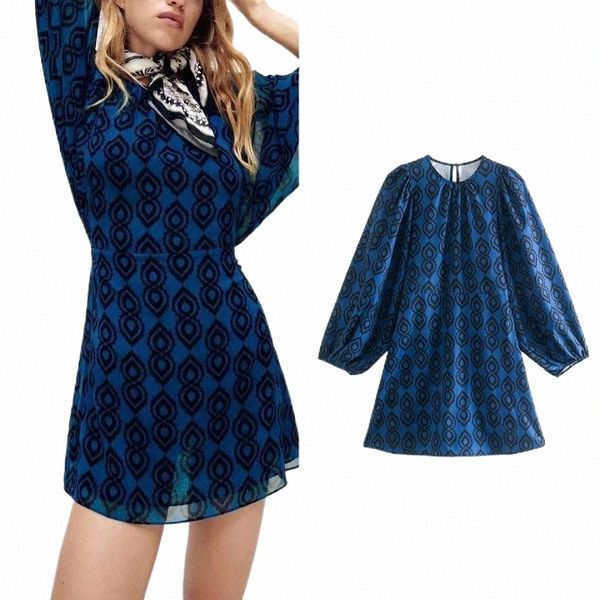 casual dresses 2022 zar women fall fashion short dress geometric print retro high street folded long sleeve elegant temperament vestidos 56j, Black;gray