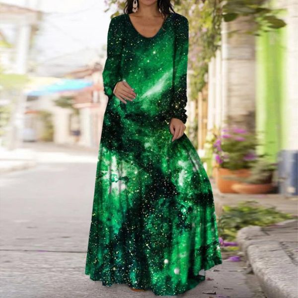 casual dresses 40# boho harajuku print maxi dress women o-neck long sleeve loose for women plus size elegant vestidos, Black;gray