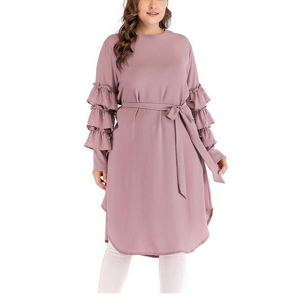 casual dresses autumn and winter long-sleeved dress large size women's 4xl- 8xl bust 135cm round neck fashion multi-layer belt, Black;gray