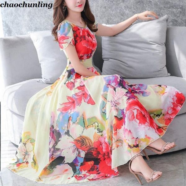 casual dresses chaochunling european fashion 2021 summer lady o-neck temperament dress women chiffon beach black and white 2colors1, Black;gray