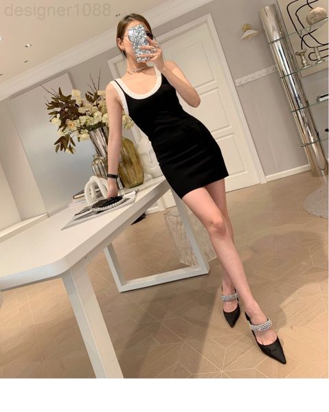 casual dresses designer aw dawangjia 22 spring and summer new ribbon three-dimensional letter contrast color slim sleeveless dress 8hw4, Black;gray