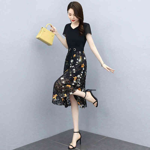casual dresses dress women's summer 2022 fashion this year, small gentle wind french slim chiffon floral skirt is hdkg, Black;gray