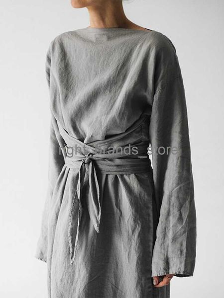 casual dresses fashion cotton linen loose women dress egant o-neck lace-up pullover dress casual long seved bandage solid color dress 0213v2, Black;gray