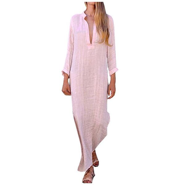 Women s Slim Fitted Crochet Long Dress Long Sleeve Deep V-Neck Lapel Collar Thigh Elegant Maxi Dress