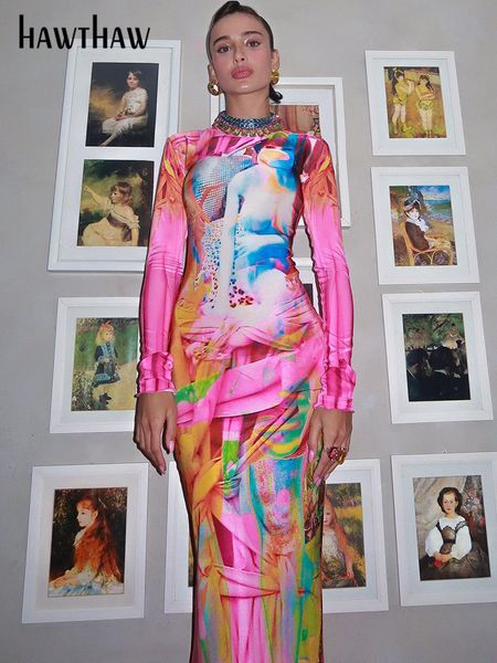casual dresses hawthaw women fashion long sleeve bodycon printed streetwear dress fall clothing wholesale items for business 230207, Black;gray