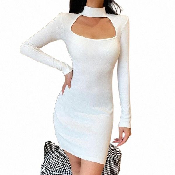 casual dresses casual dresses high neck cotton tight-fitting dress elegant long-sleeved hollow women's mini female basic high-waist pul, Black;gray