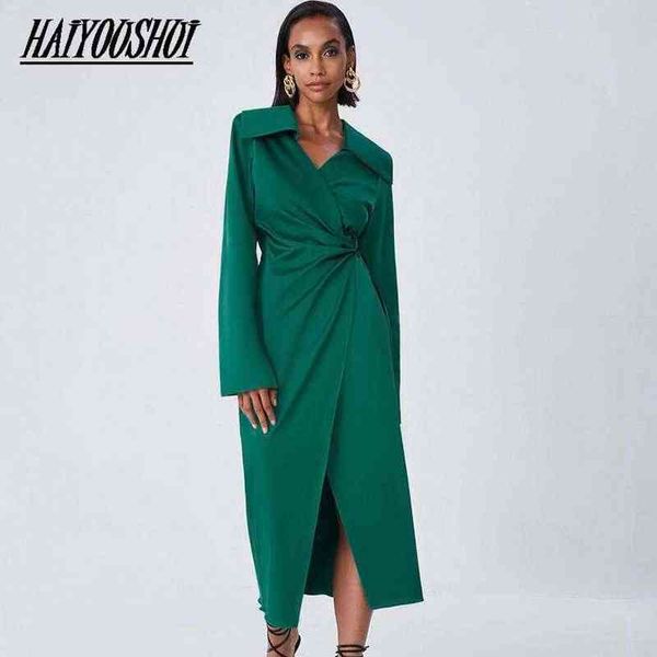 casual dresses lady v-neck satin wrap elegant long dress women green long sleeve a-line mid-cal dresses high waist split dress 2022 t220831, Black;gray