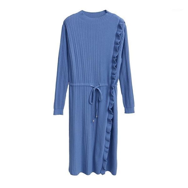 casual dresses perhaps u blue black apricot caramel purple knitted o neck long sleeve empire lace-up knee length dress autumn d1971, Black;gray