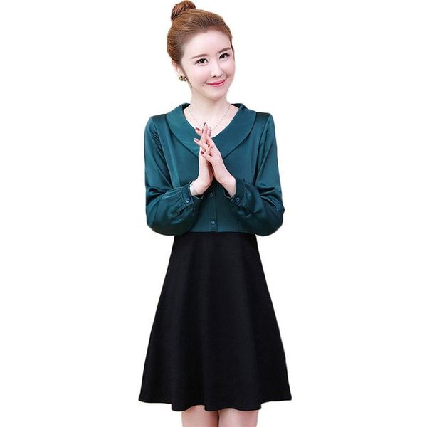 casual dresses plus size women elegant slim autumn mini dress 2021 long sleeve patchwork for office ladies party vestido f940, Black;gray