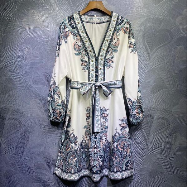 casual dresses seifrmann women summer fashion designer party a-line dress bow sashes beading lantern sleeve high waist printed midi, Black;gray